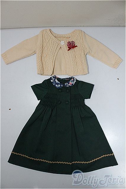 MSD/OF:よそゆきワンピセット(ダークグリーン)・ミニ/1/4 40cm BJD MJD 衣装 ドール用 A-25-11-26-160-NY-ZA