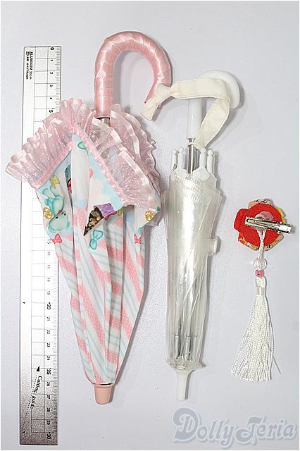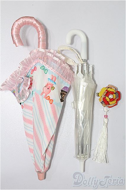 | ビニール傘、ピンクの傘、和風髪飾りの3点/ピンクの傘は留め具がありません / |