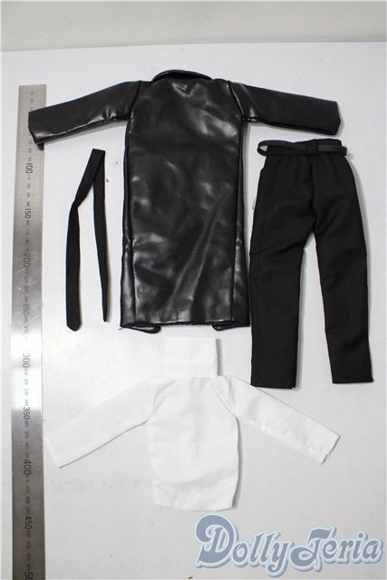 | レザー風ロングジャケット+シャツ+パンツ+ベルト / |