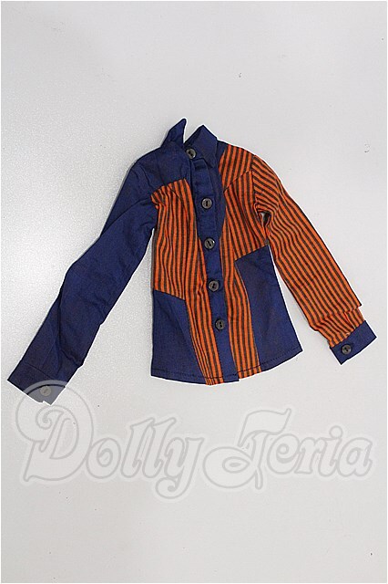 | ストライプ切替デザインシャツ/青色部分によごれ多数有 / |