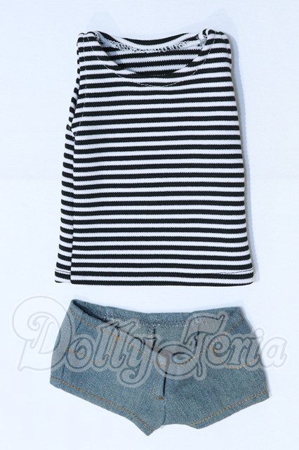 | ボーダーノースリーブトップス+浅めデニムショートパンツ/パンツウエスト緩めサイズ・ウエスト約22cm / |